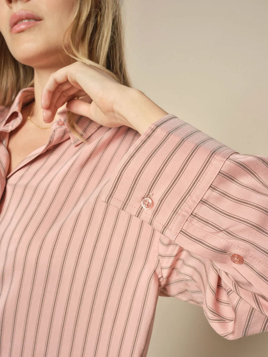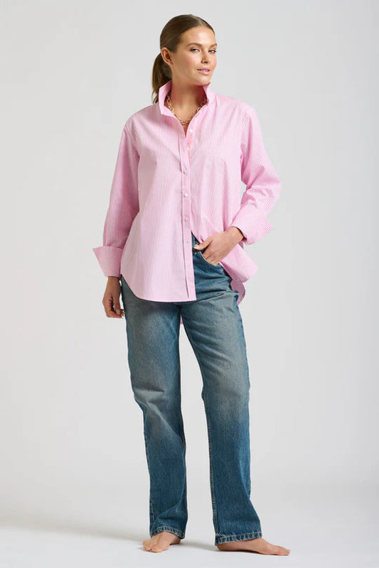 The Elodie Trim Girlfriend Relaxed Shirt Pink Stripe