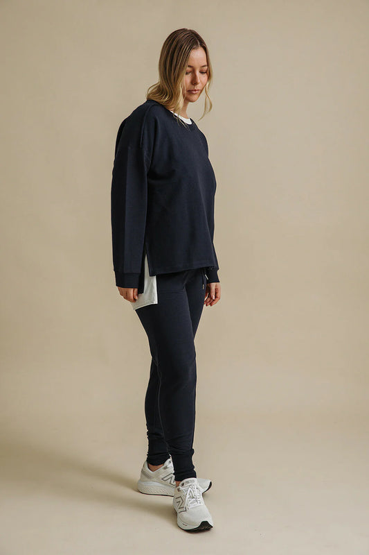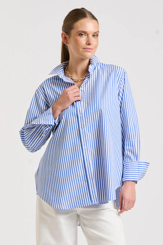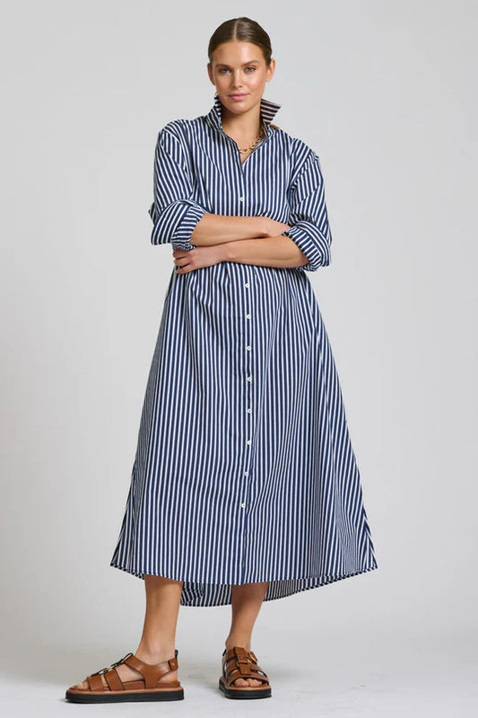 The Luna Oversized Long Line Shirt Dress Navy Thick Stripe