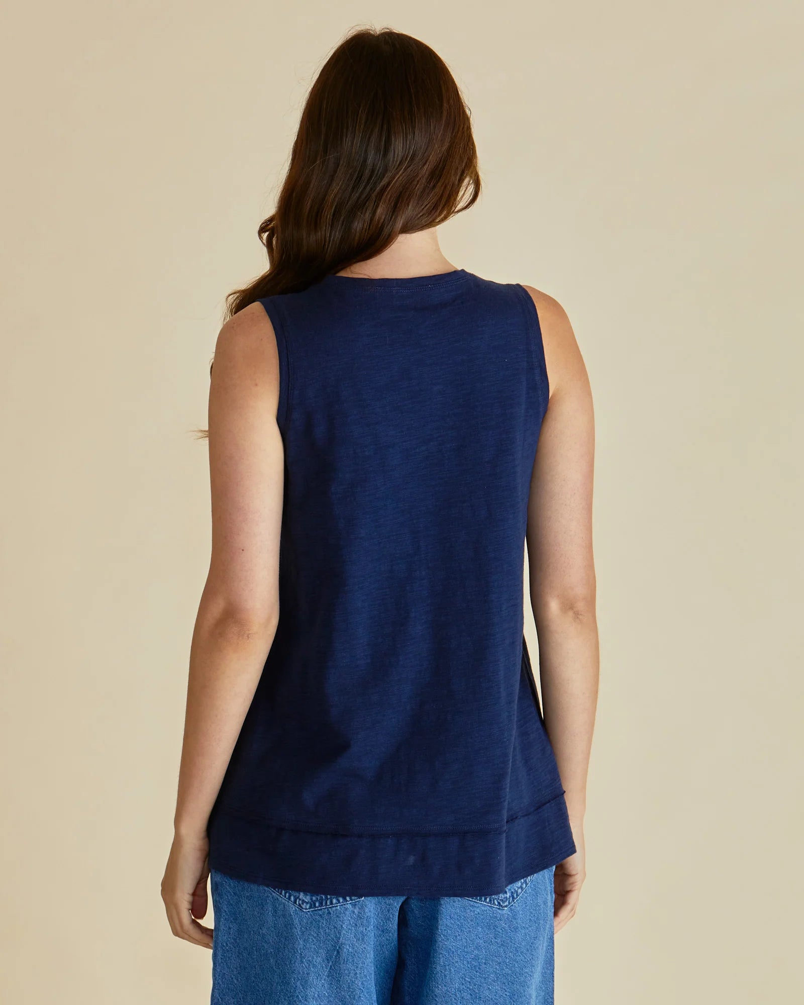 The Mariah Tank brings elevated simplicity to everyday dressing. Crafted from soft stretch viscose jersey, it offers a relaxed fit that drapes beautifully on the body. The scoop neckline and clean lines make it perfect for layering or wearing solo. Comfortable, classic and effortlessly chic through every season.