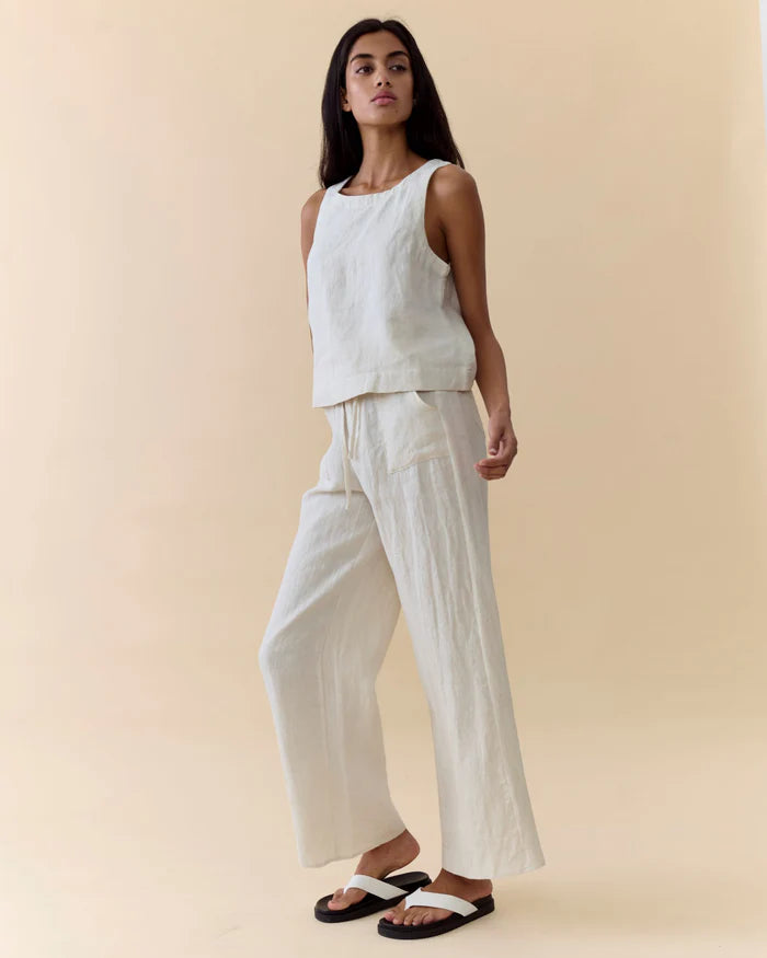 The JUDE TANK in Magnolia offers a timeless silhouette that effortlessly complements any outfit. Its versatile design makes it perfect for layering or wearing on its own for a polished, classic look.