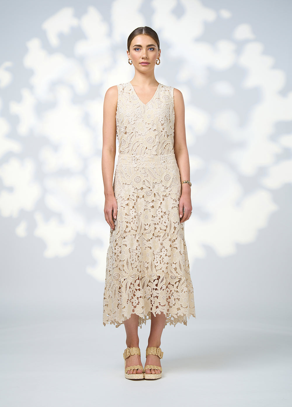 Easy fitting V neck lace top with thick shoulder straps, side splits & bust darts for a comfortable fit. Perfect piece to elevate any outfit. Fully lined.
