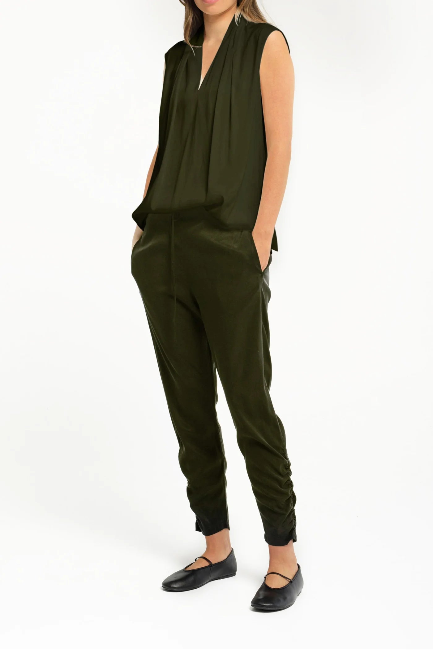 Lounge the Label Top Molise is cut from our luxury stretch cupro. Luxury stretch cupro that drapes beautifully. It has flattened tucks at neckline which falls luxuriously. Straight hem with splits at side seams for a relaxed fit. Designed in Australia. Timeless by Design.