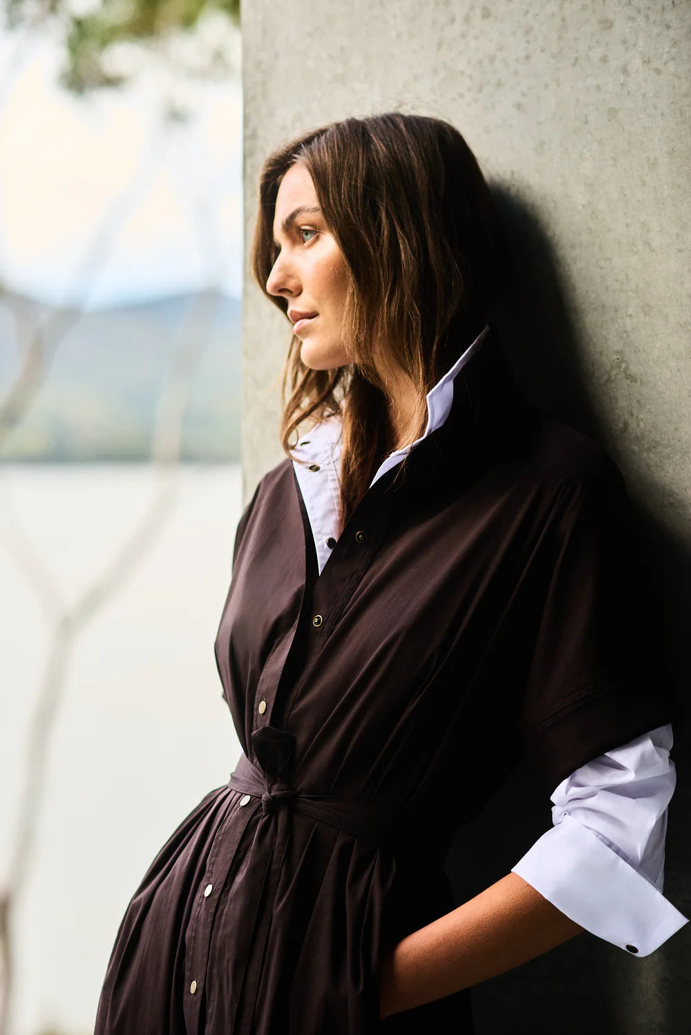 Crafted in Mela Purdie's Lightweight Microprene, A crisp, cotton rich fabric with high stretch and a polished finish. The Stud Shirt features a stud button closure, deep shirt cuffs and a straight hem, making it an elevated take on a classic shirt silhouette.