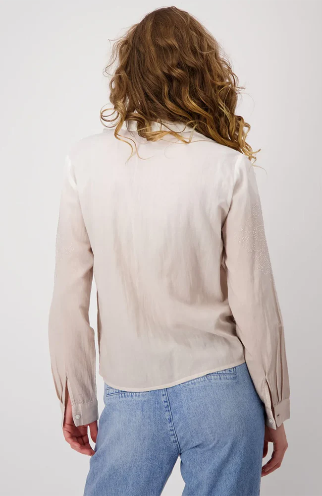Pair with tailored trousers for a polished ensemble or wear with jeans for a relaxed yet sophisticated look. This blouse is ideal for those who love subtle embellishments and effortless style.