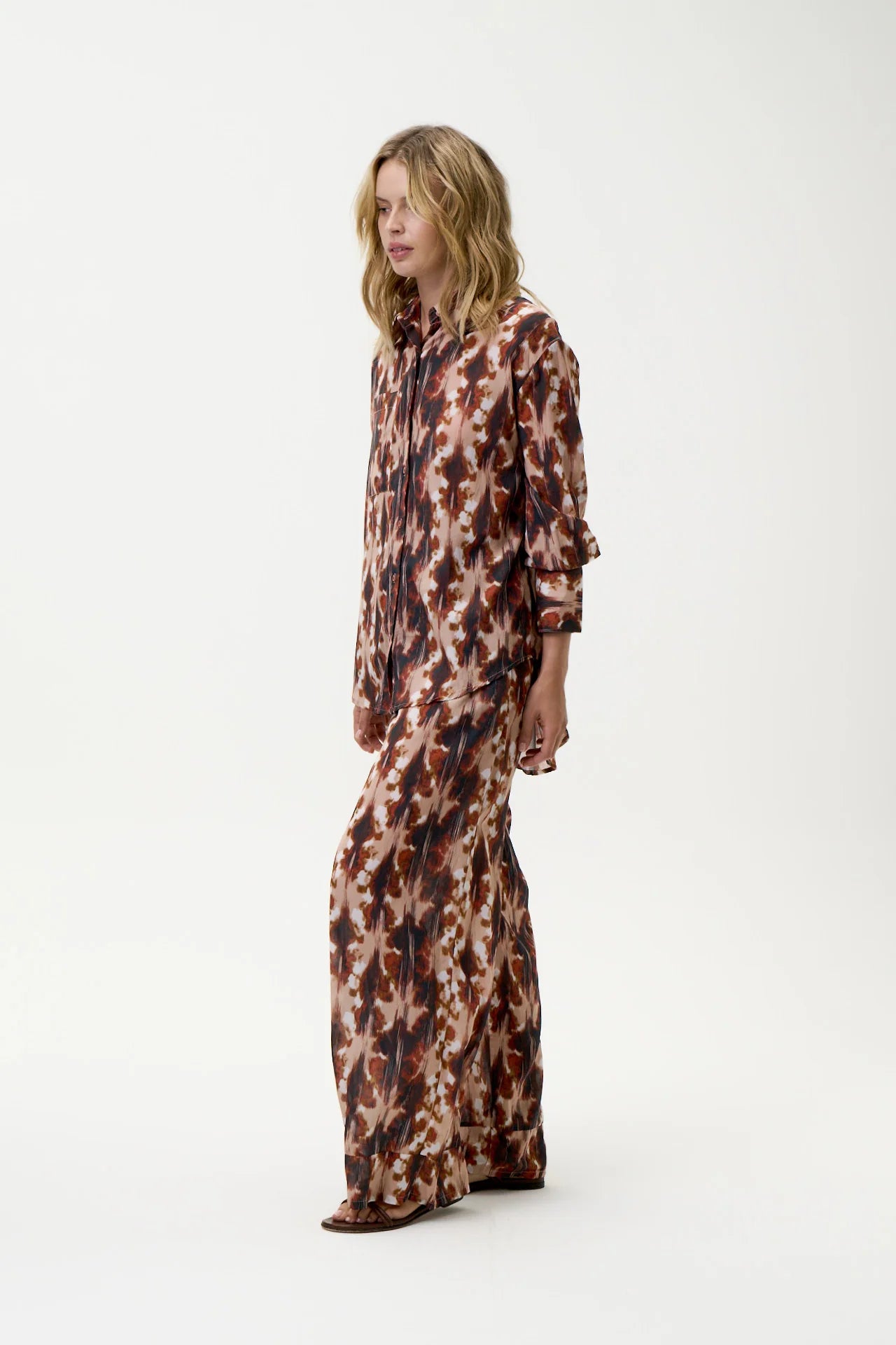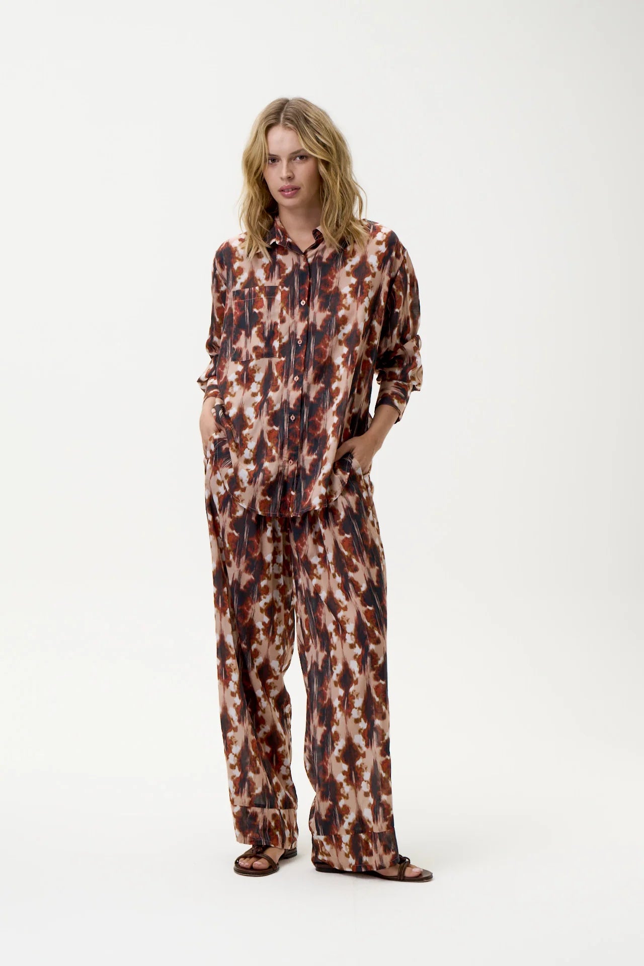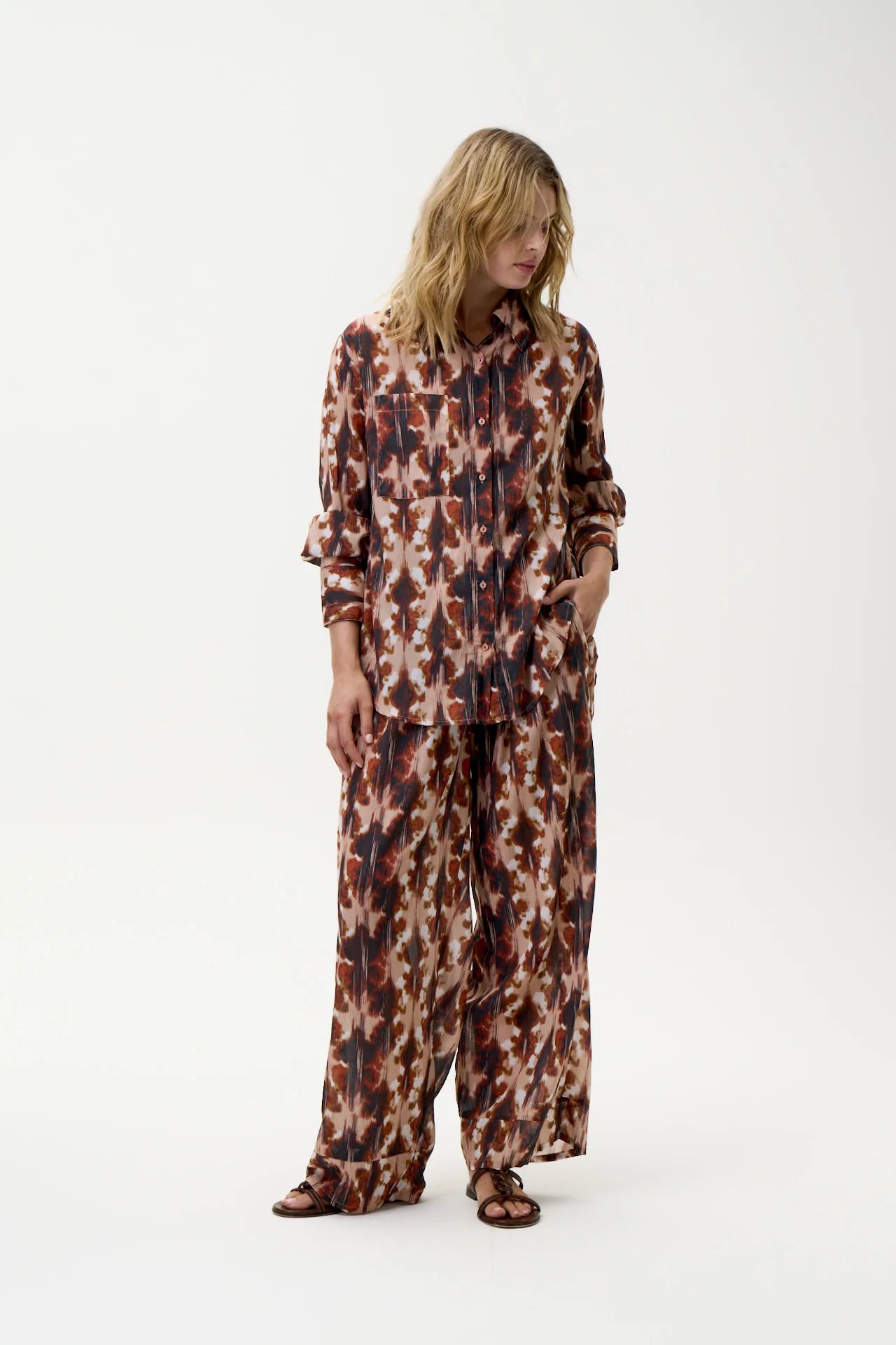 The Claudia Shirt is a relaxed button-down style with a laid-back, oversized fit. Featuring a classic collar, long sleeves, and a gently curved hem, it’s an easy throw-on piece designed for effortless holiday dressing. Pair with the Isla Pants for a coordinated resort look.