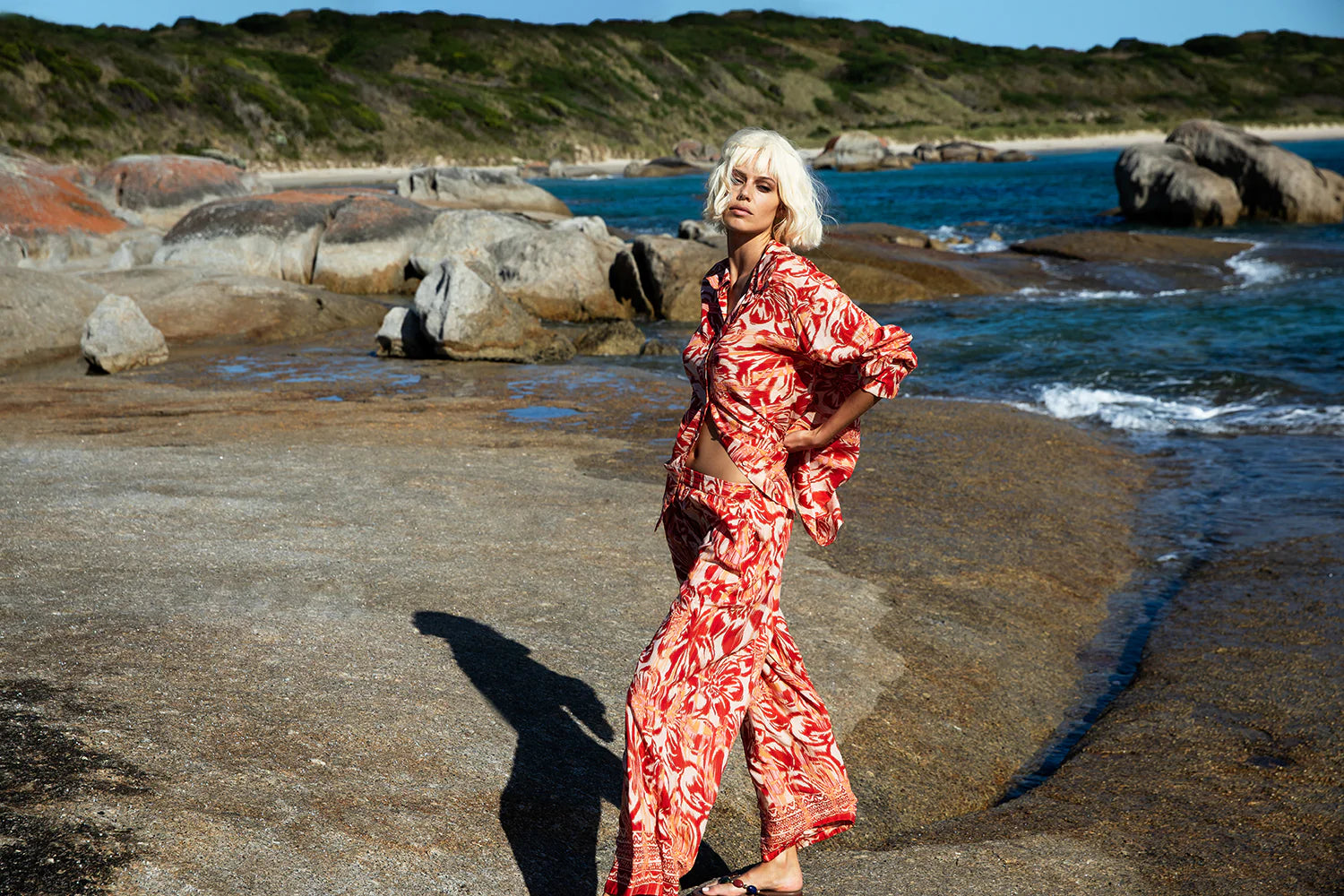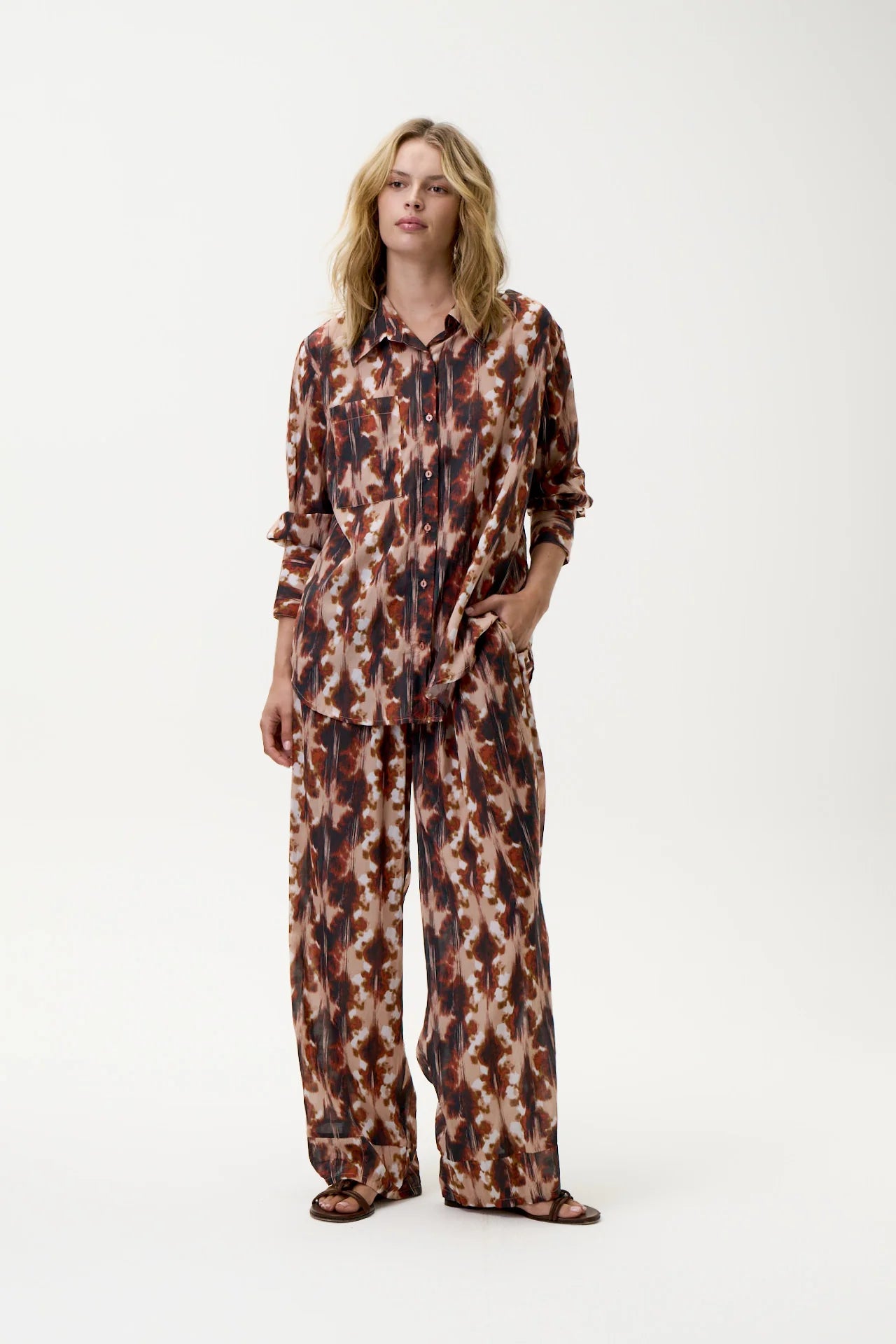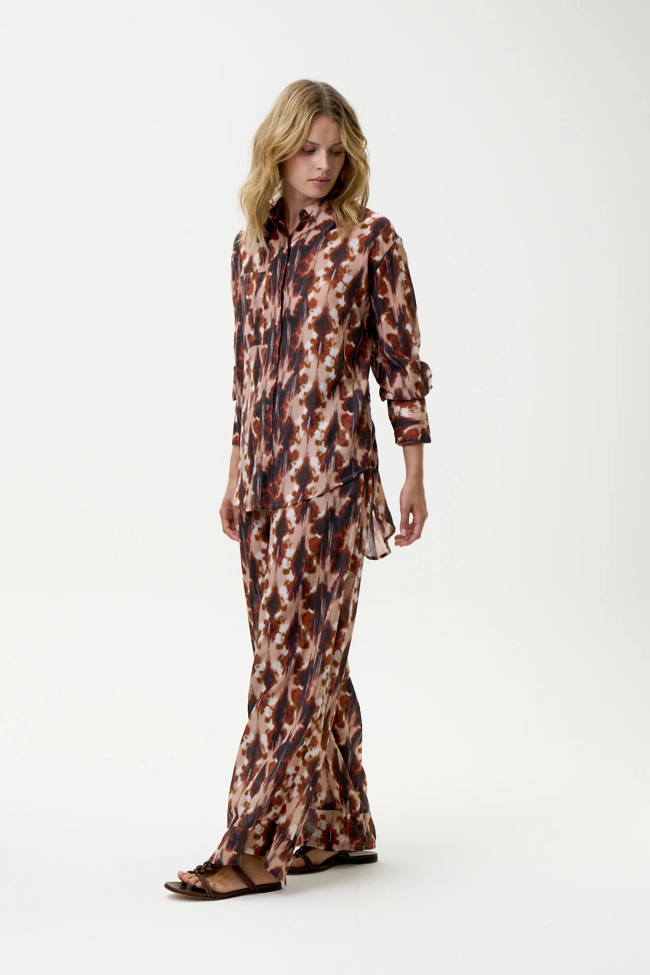 The Claudia Shirt is a relaxed button-down style with a laid-back, oversized fit. Featuring a classic collar, long sleeves, and a gently curved hem, it’s an easy throw-on piece designed for effortless holiday dressing. Pair with the Isla Pants for a coordinated resort look.