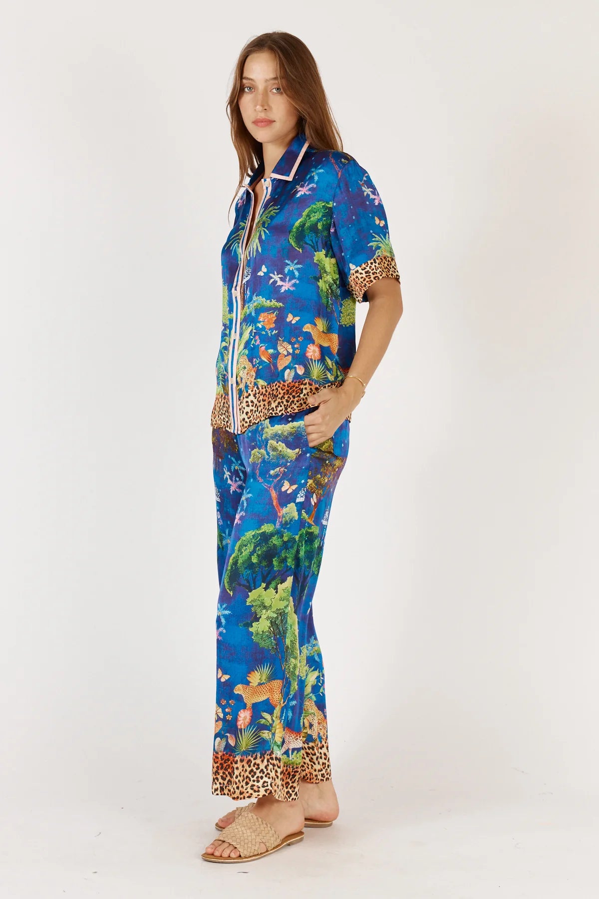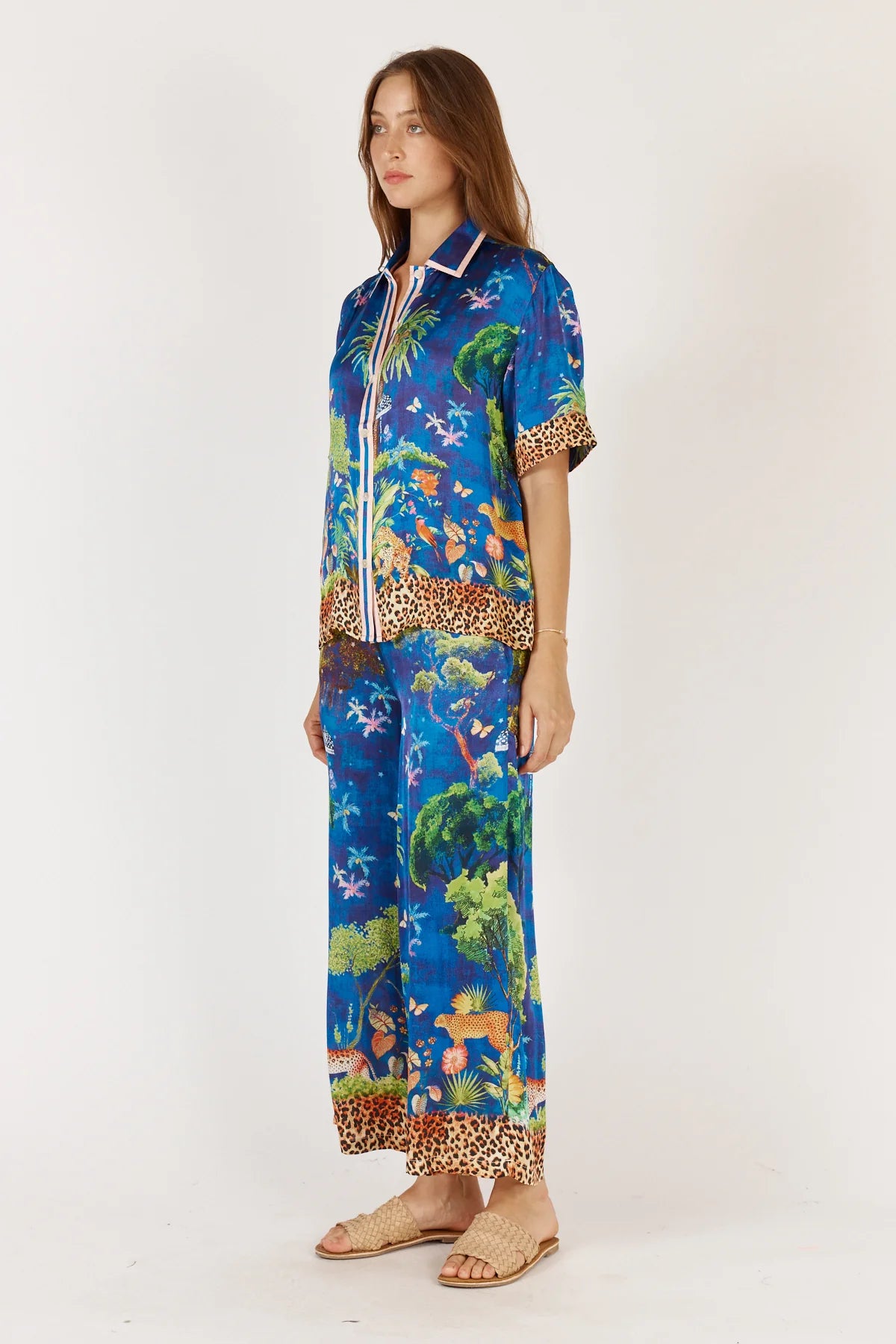 Crafted from luxurious 100% viscose satin, the Mataram Pant Navy combines comfort and elegance. Its flat front waistband and elasticated back ensure a flattering fit, while side seam pockets add practical functionality. The wide leg silhouette offers graceful movement, making these pants a refined choice for any sophisticated wardrobe.