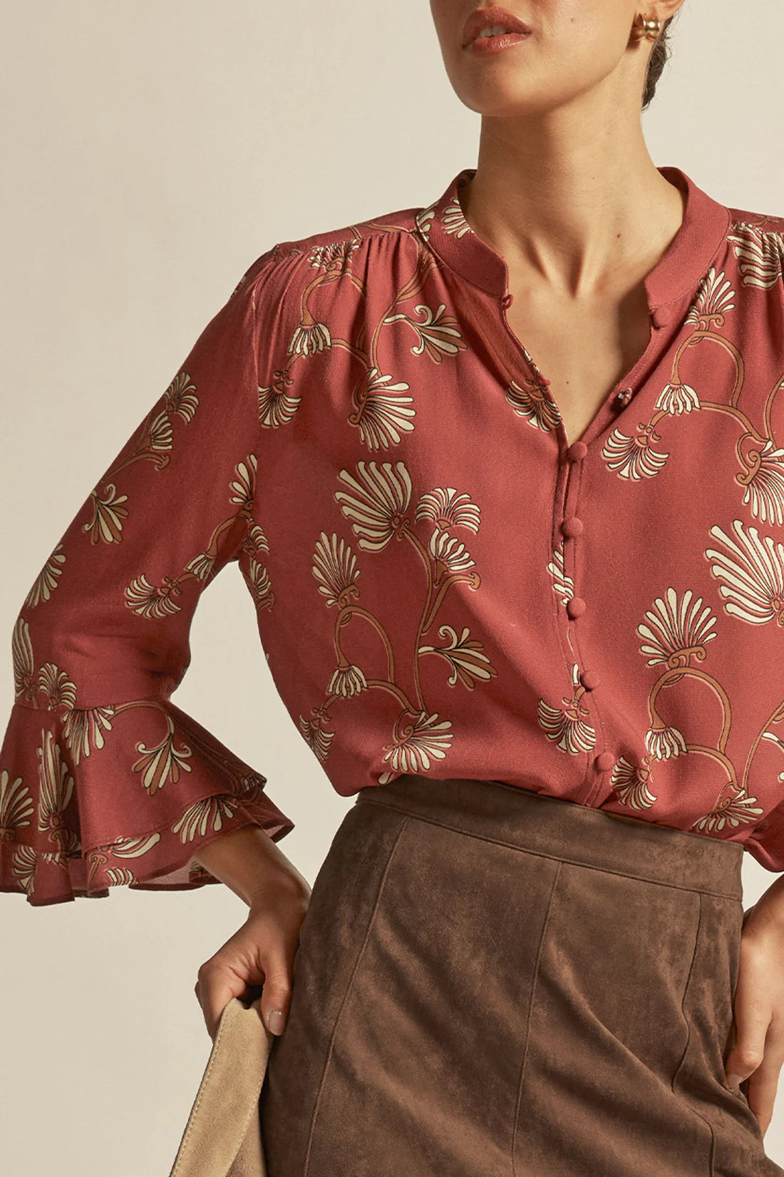 softly expressive and beautifully balanced, the gaze top brings movement and refinement to everyday dressing. A warm berry base with flowing, art-nouveau inspired florals, Berry Nouveau feels rich and decorative while remaining refined and easy to wear.